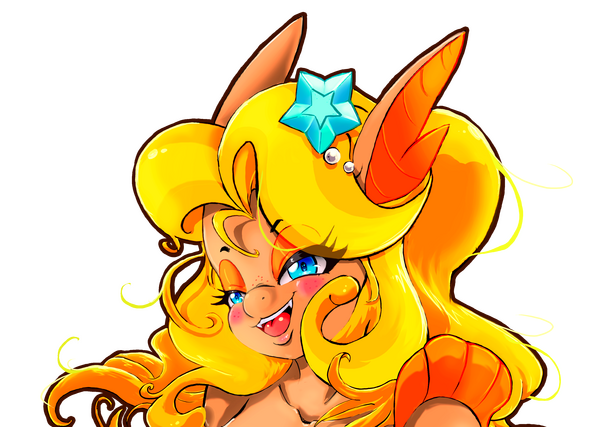 Saltwater Taffy, or Miss Taffy, is cursed with a face of perpetual guilt. A sweet, gentle Hippogriff maid, she spends her time tidying, doodling, and fretting with her purple hair bows. Miss Taffy adores food, too—especially anything sweet or savory—and is happy to share! Just don't mind the constant glances over her shoulder... she's innocent, really!